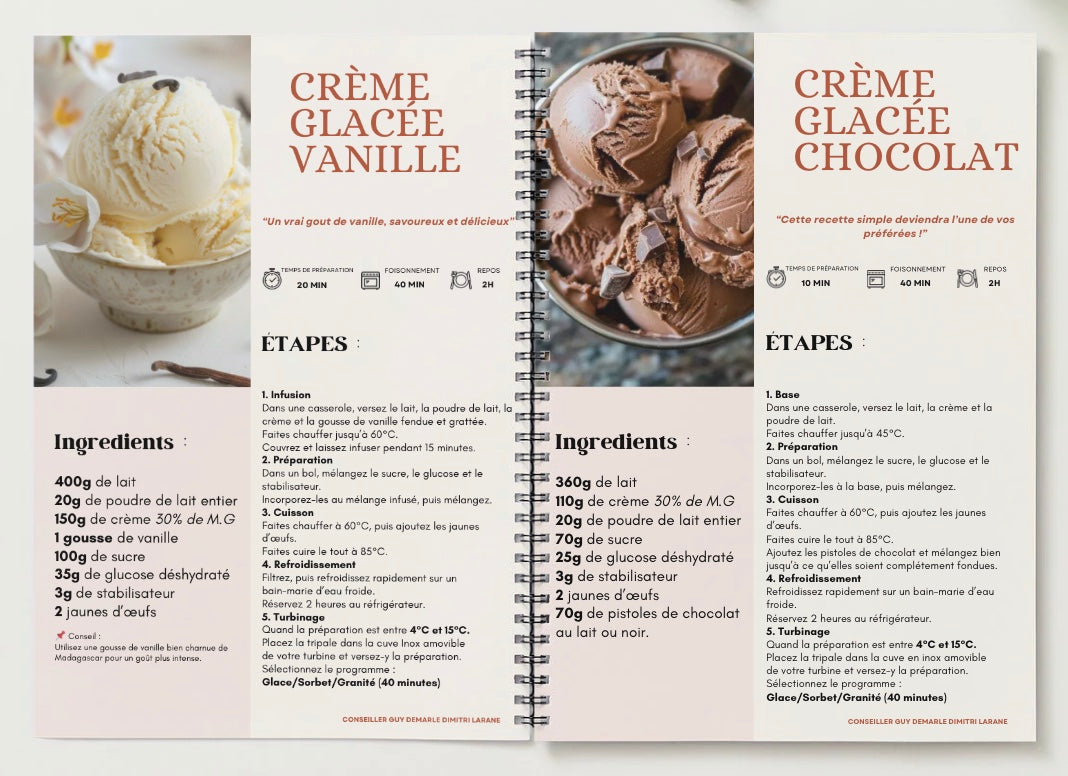Livret de 34 Recettes Glacées - Spécial Turbine à Glace et Yaourtière Borealia